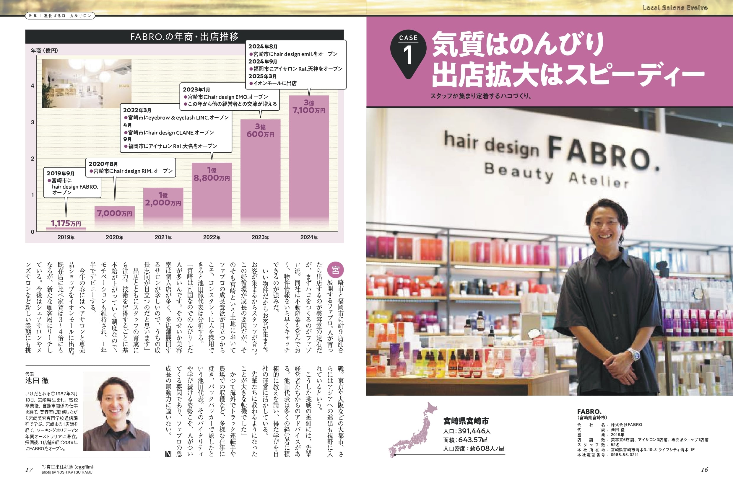 少子高齢化による深刻な求人難や新規集客といった課題はあるものの、地域内のブランド力を高めていけば、高リピートを軸とした安定経営が行えるというのがこれまでのローカルサロンの強みだった。しかし、最近ではこうした常識に捉われず、特化型サロンの出店や薬 軟な働き方など、都市型サロン並みの特徴を打ち出すサロンが増えている。ローカルサロンはどこまで進化するのか?全国各地の成長サロンを取材する。