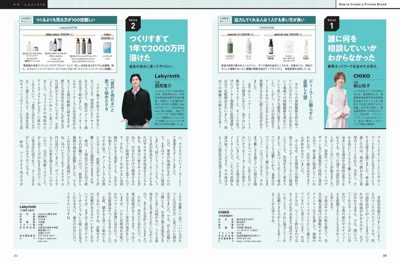 コロナ禍以降、ECの普及もありPB(プライベートブランド)をつくるサロンが急増している。流通の制約がなく、自分たちのこだわりを形にした商品をつくれるのがPBの大きな魅力だが、安易につくると足をすくわれる可能性も高い。