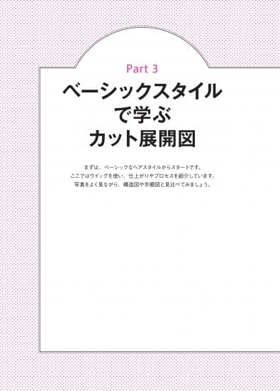 ・カット展開図(ヘアスタイルの全体像がわかる「構造図」と、カットのプロセスを表した「手順図」の2種類からなる)の基本と書き方がわかる