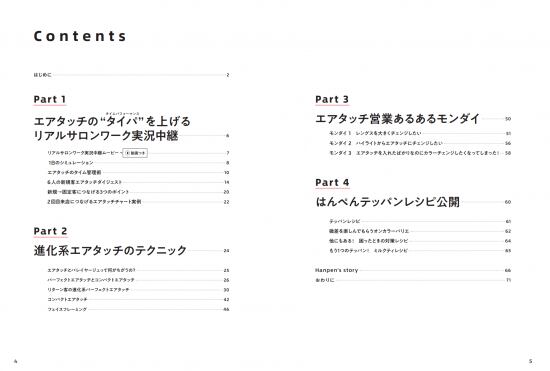 長時間施術が導入のハードルを上げがちなエアタッチだが、実はタイムパフォーマンスがよいらしい! 同時施術が可能な高単価エアタッチを効率よく取り入れる考え方とテクニックを1冊にまとめました。実際にREDEALは顧客ゼロからオープン半年で店舗売上600万(スタイリスト2名)を達成。徹底した時間管理、時短とクオリティ、高単価&高リピートのリアルサロンワークを公開します!