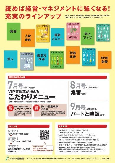 2009年12月に創刊され、2万人以上の美容室経営者・幹部から支持いただいている会員制マネジメント誌『月刊NEXT LEADER』通常はNEXT CLUB会員様にしか購読いただけない本誌が期間限定で試読いただけます。